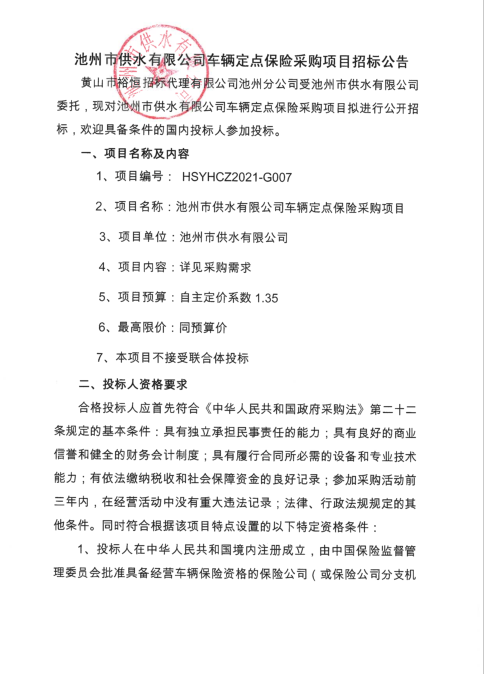 | 池州市供水有限公司車輛定點(diǎn)保險(xiǎn)采購項(xiàng)目招標(biāo)公告 | |